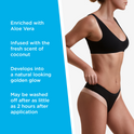 Formulated with 6% DHA as its key active ingredient, this solution has been enriched with Aloe Vera and infused with the fresh scent of Coconut for a long-lasting tan that hydrates and nourishes the skin. Available in a range of shades to suit different skin tones, this tan solution is touch dry in seconds and may be washed off 2 hours after application. Cruelty-free & vegan-friendly.
