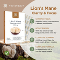 Healthspan Clarity & Focus Lion's Mane 4000mg (60 Capsules) contains 4000mg Lion's Mane Mushrooms with added Biotin, Vitamin B12 and Iron for energy and cognitive function, helping you stay sharp and focused.